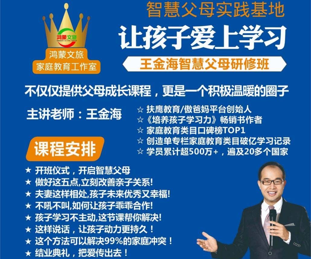 2023年5月13日,鸿蒙文旅家庭教育工作室(王金海博士智慧父母实践基地)举行了智慧父母研修班的开班仪式。这个由王金海博士主讲,带导老师邓秋玲协助教学的研修班专为关注家庭教育的优秀家长设计,旨在解决教育孩子过程中的各种困惑,让孩子真正爱上学习。