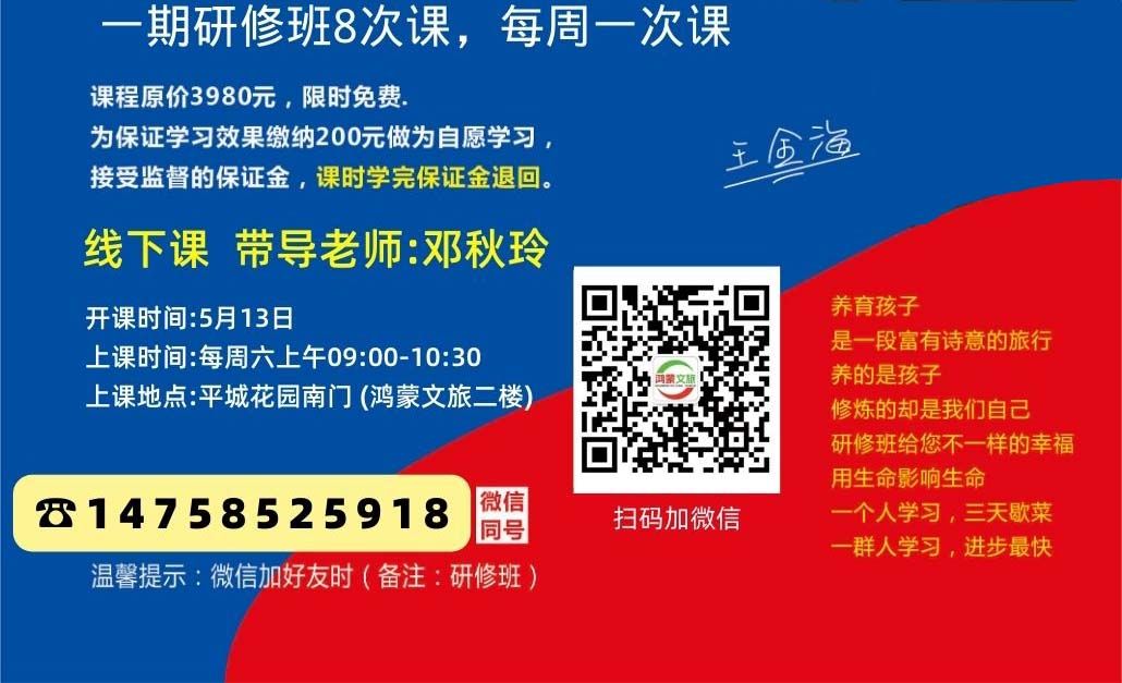 对于任何有意学习的家长,鸿蒙文旅智慧父母研修班随时欢迎试课,每周六上午09:00-10:30,在平城花园南门的鸿蒙文旅二楼举行。有意参与者可以直接联系带导老师邓秋玲(电话:14758525918)获取更多信息。
